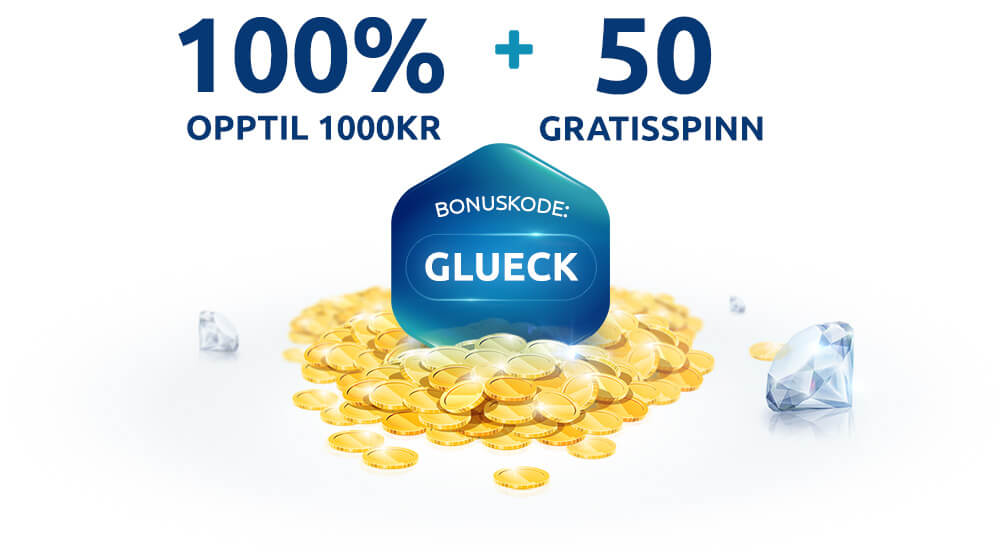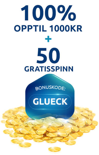 Krediteres automatisk etter innskudd. Kansellering kan forespørres. Kun ved første innskudd. Minsteinnskudd: 100kr, maksbonus 1000kr. Spill: Book of Dead, spinnverdi: 1kr. Alternativt spill: Spinning Wilds; Spinnverdi: 1kr Omsetningskrav: 30x innskuddet pluss bonusbeløpet, 60x gevinster fra gratisspinn (kun automater gjelder) innen 30 dager. Maksinnsats er 10% (minst 1kr) på gevinster fra gratisspinn og bonusbeløpet, eller 50kr (den laveste gjelder). Spinnene må brukes og/eller bonusen må hentes før du bruker penger fra innskudd. Innskudd/velkomstbonus kan kreves bare en gang hver 72 timer tvers alle kasinoer. Bonusregler gjelder.